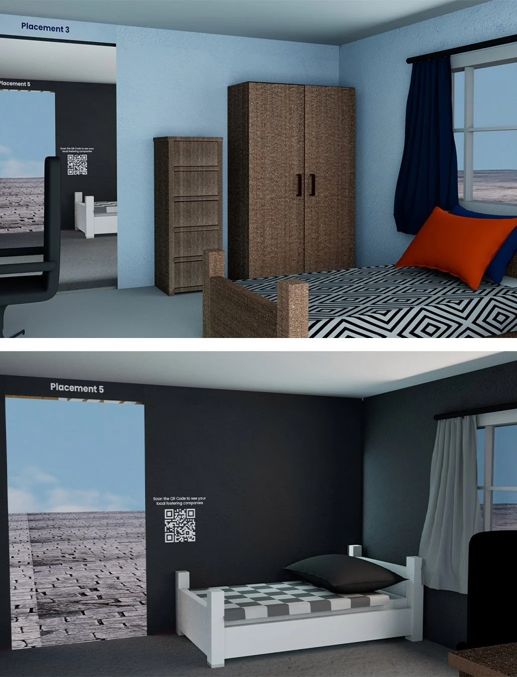 By combining visual storytelling with physical immersion, the installation aims to help visitors better understand the emotional realities of foster care.